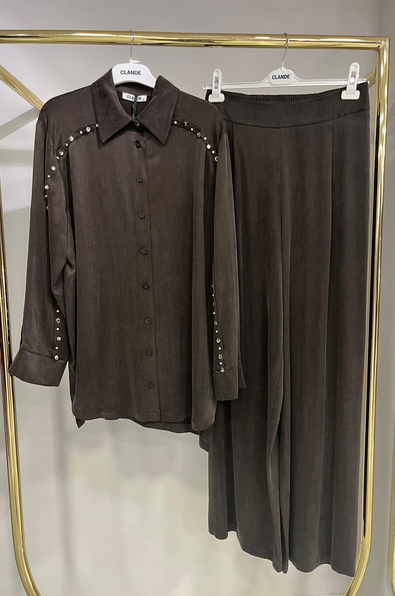 Clande Taşlı Kahve Takım