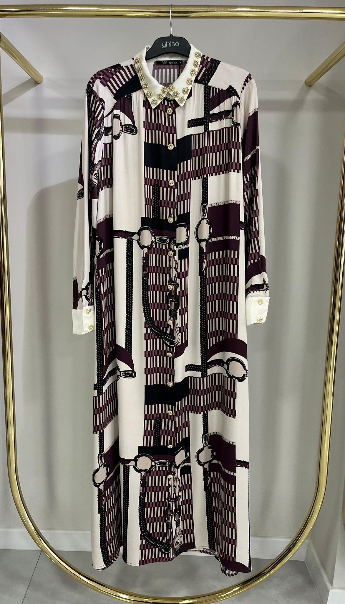 Ghisa Pano Desenli Bordo Elbise