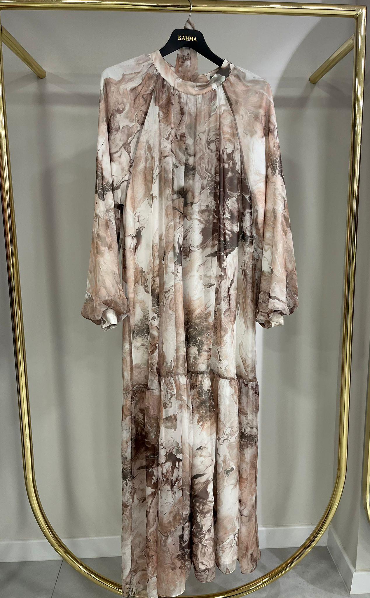 Kâhma İpek Şifon Kahve Elbise