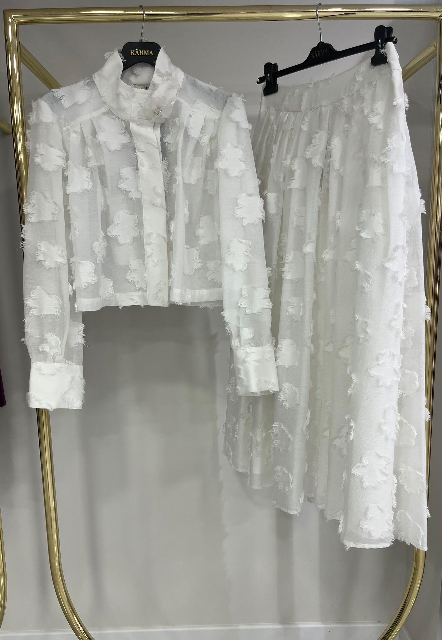 Kâhma Çiçek Detaylı Etek Ceket Takım
