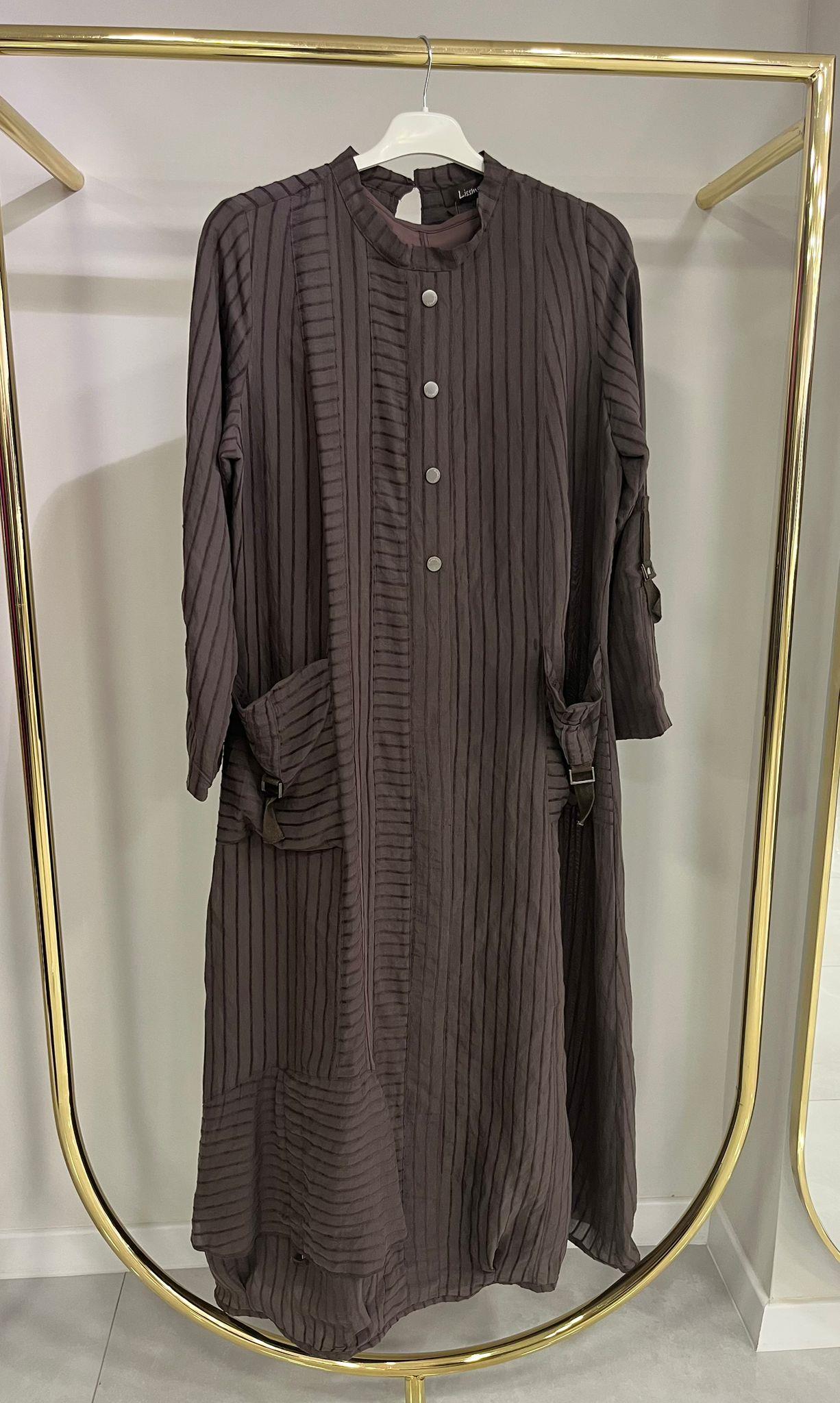 Lissmore Çizgili Cep Detaylı Kahve Elbise