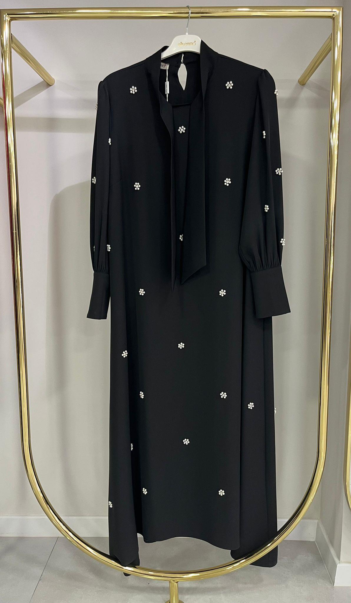 Müsemma Çiçek Taşlı Siyah Elbise