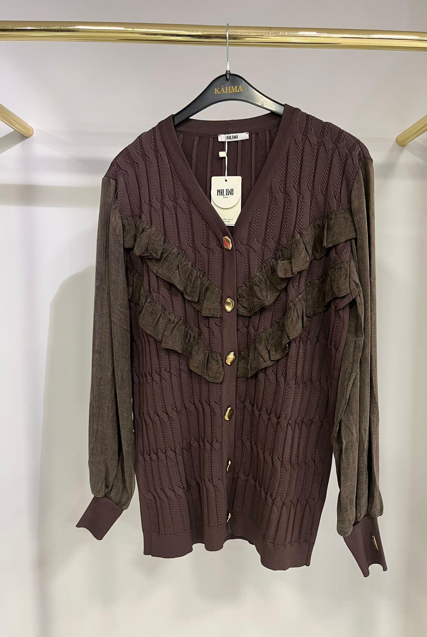 Niliwi V Yaka Fırfırlı Saç Örgü Kahve Hırka