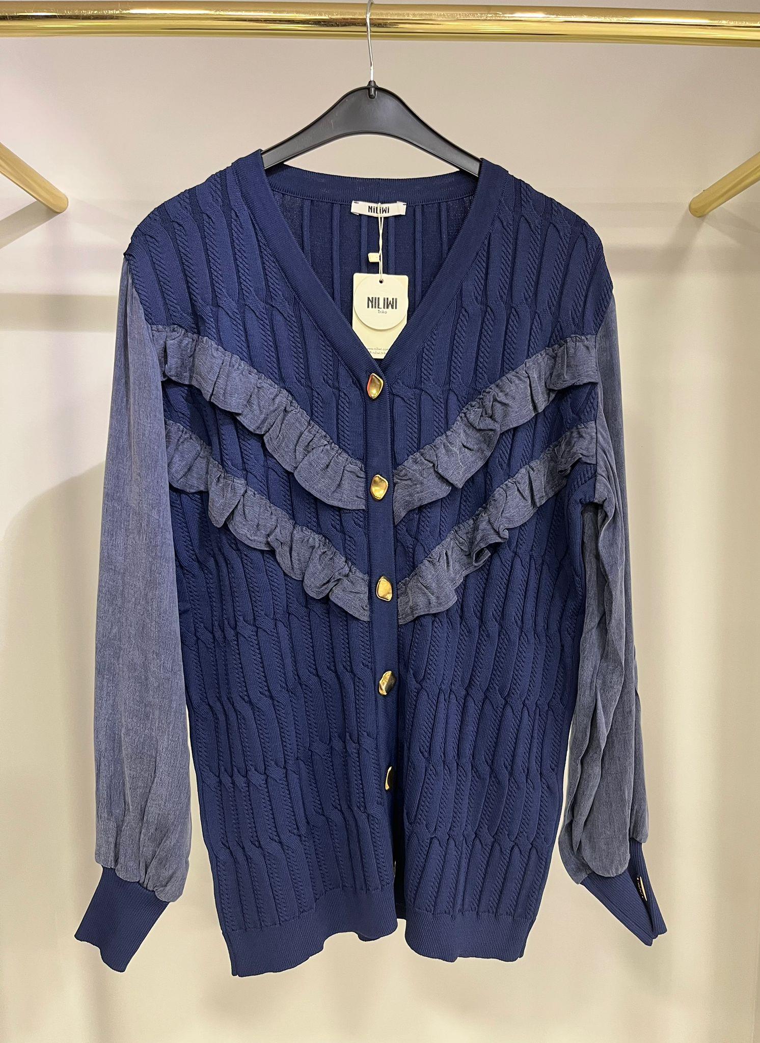 Niliwi V Yaka Fırfırlı Saç Örgü Lacivert Hırka