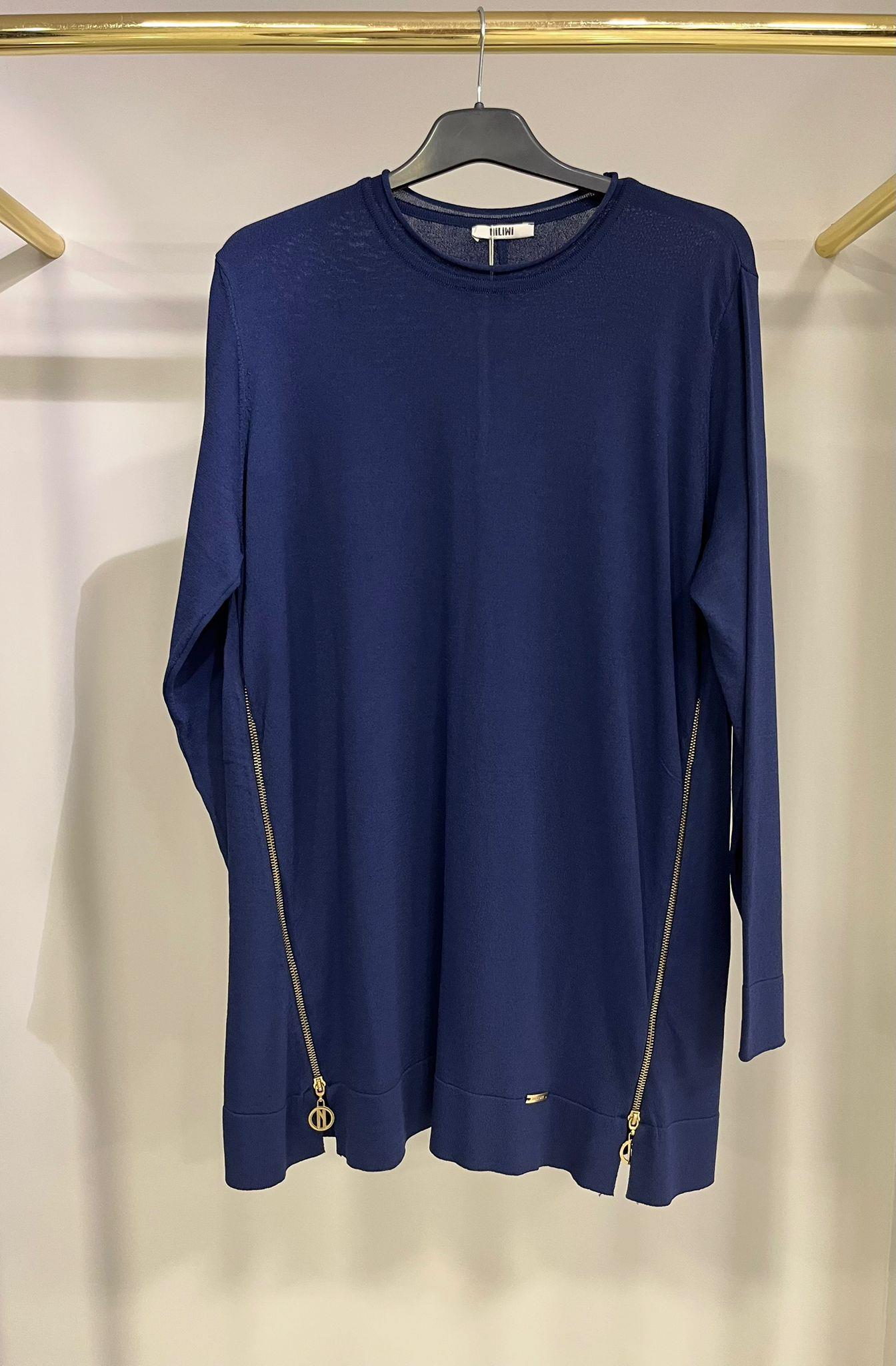 Niliwi Yanları Fermuarlı Lacivert Tunik
