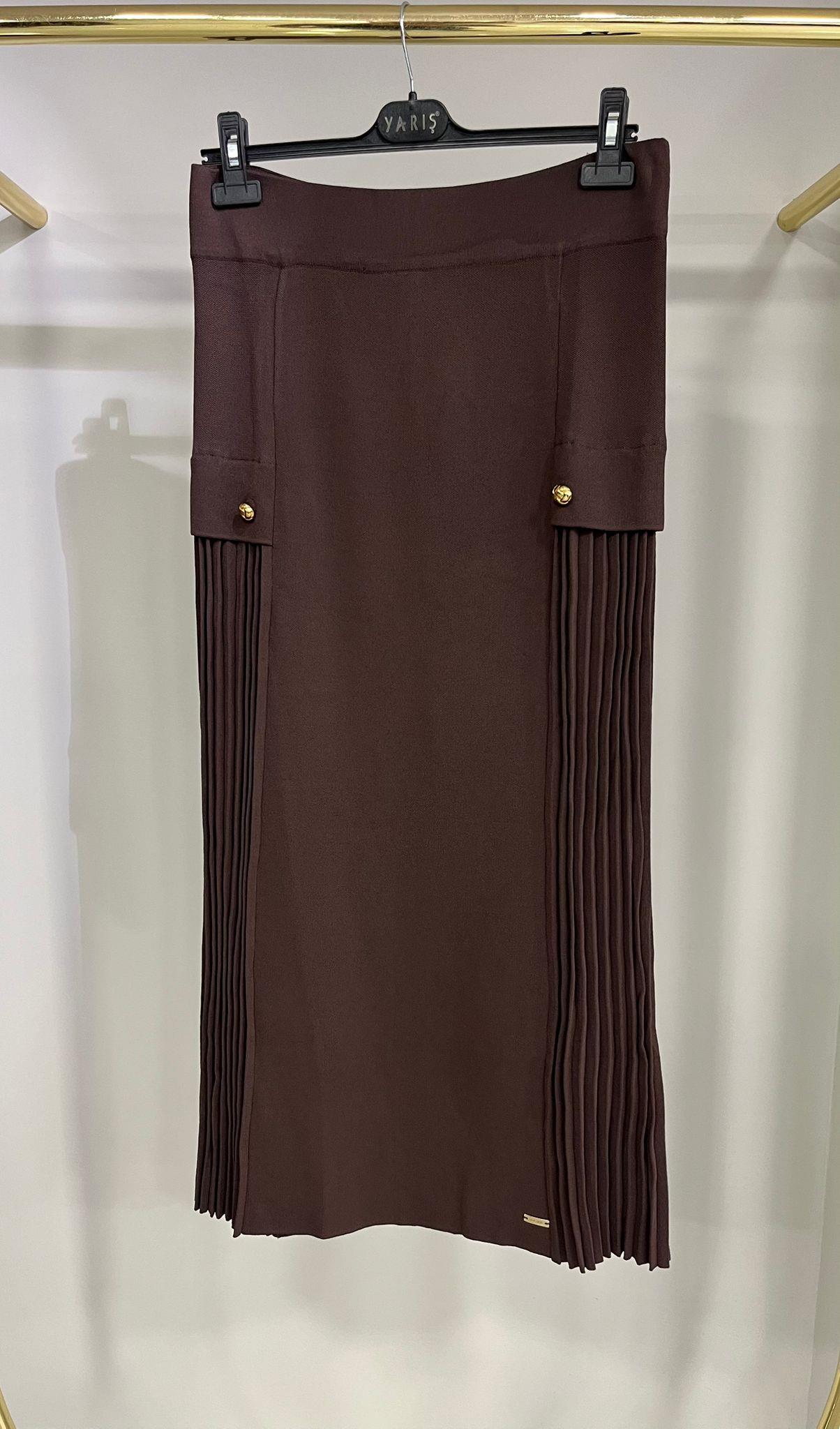 Niliwi Yanları Pileli İnterlok Kahve Örgü Etek