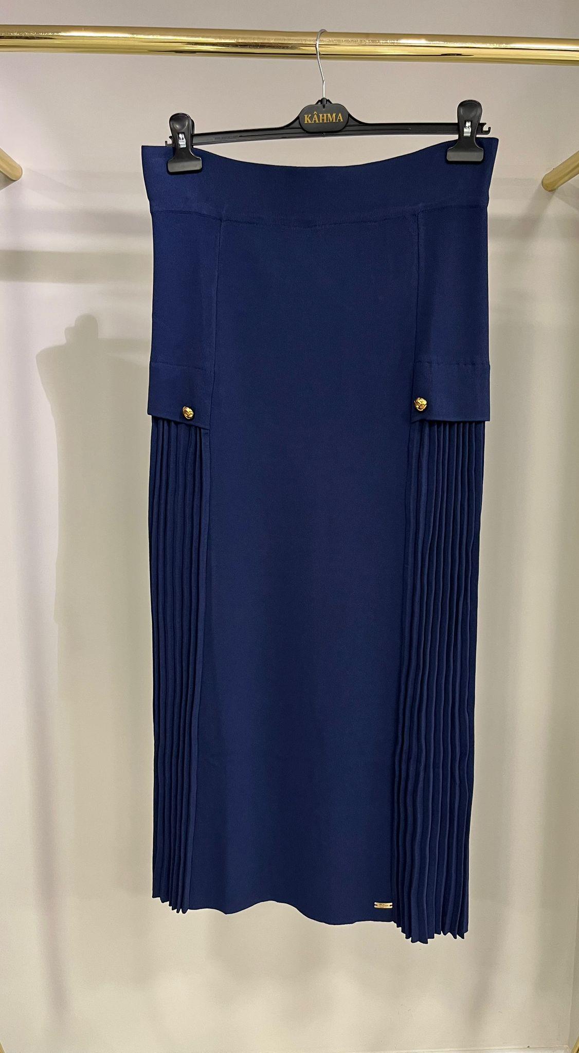 Niliwi Yanları Pileli İnterlok Lacivert Örgü Etek