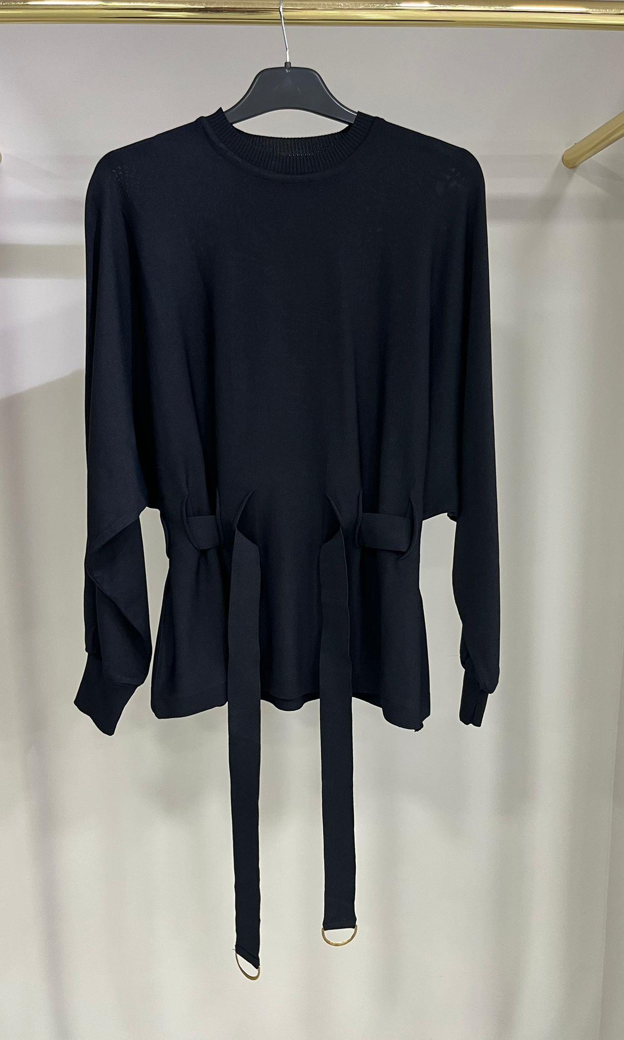 Niliwi Yarasa Kol Beli Köprülü Kuşaklı Siyah Bluz