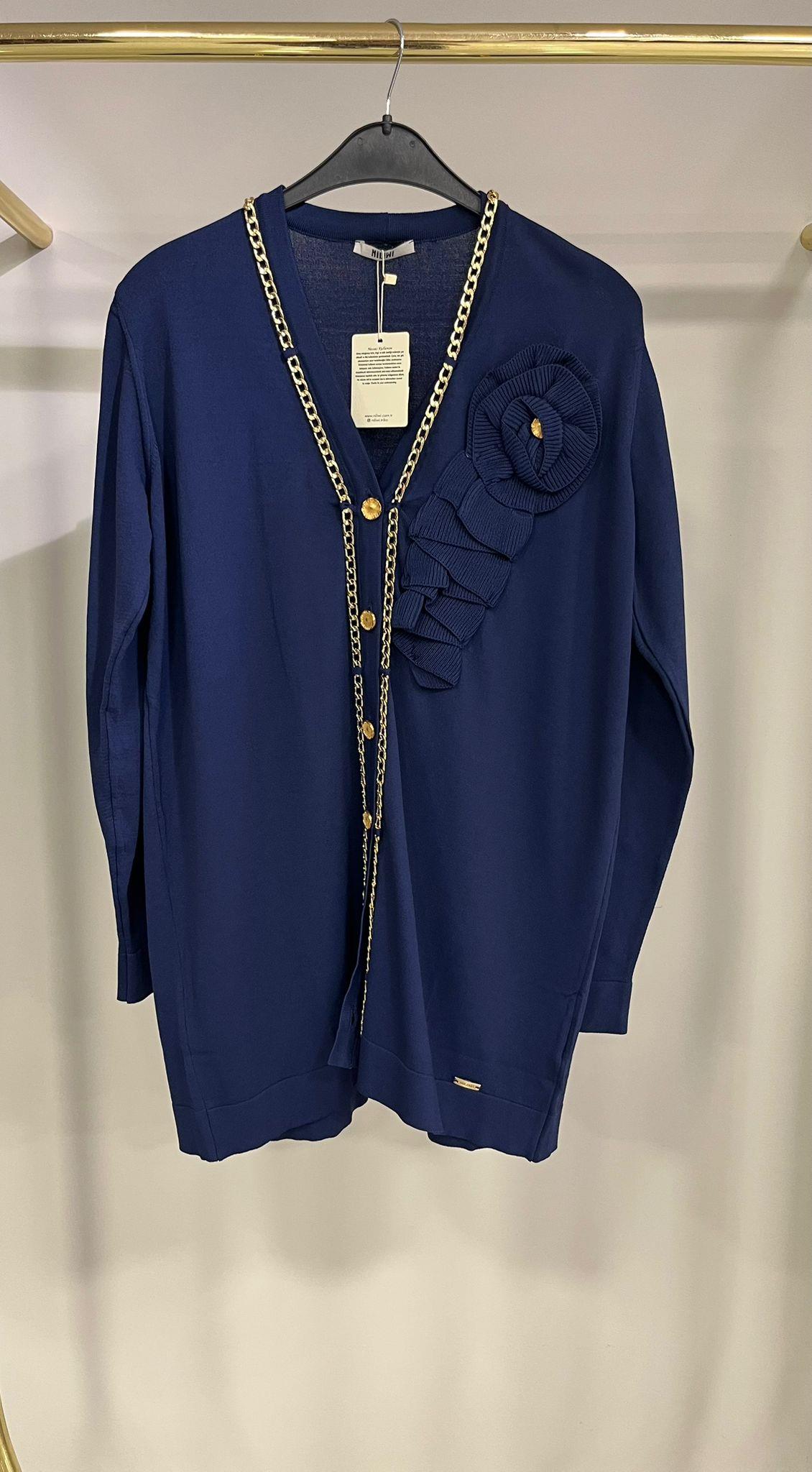 Niliwi Zincirli Yaka Lacivert Hırka