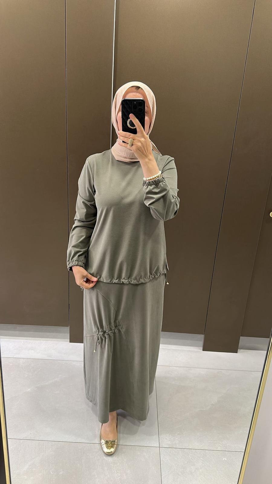 NQY Prive Büzgü Detaylı Haki Etekli Takım