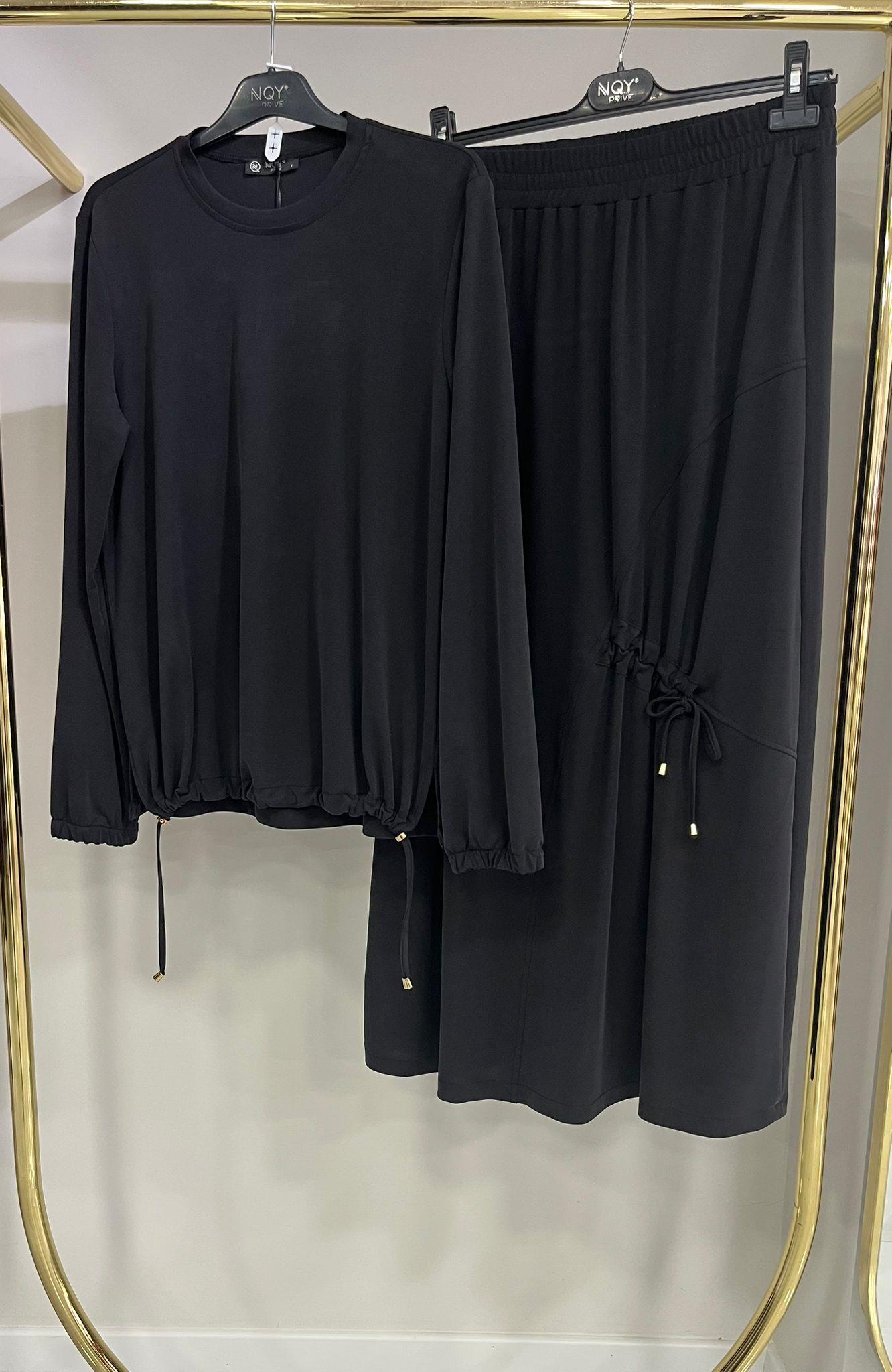NQY Prive Büzgü Detaylı Siyah Etekli Takım