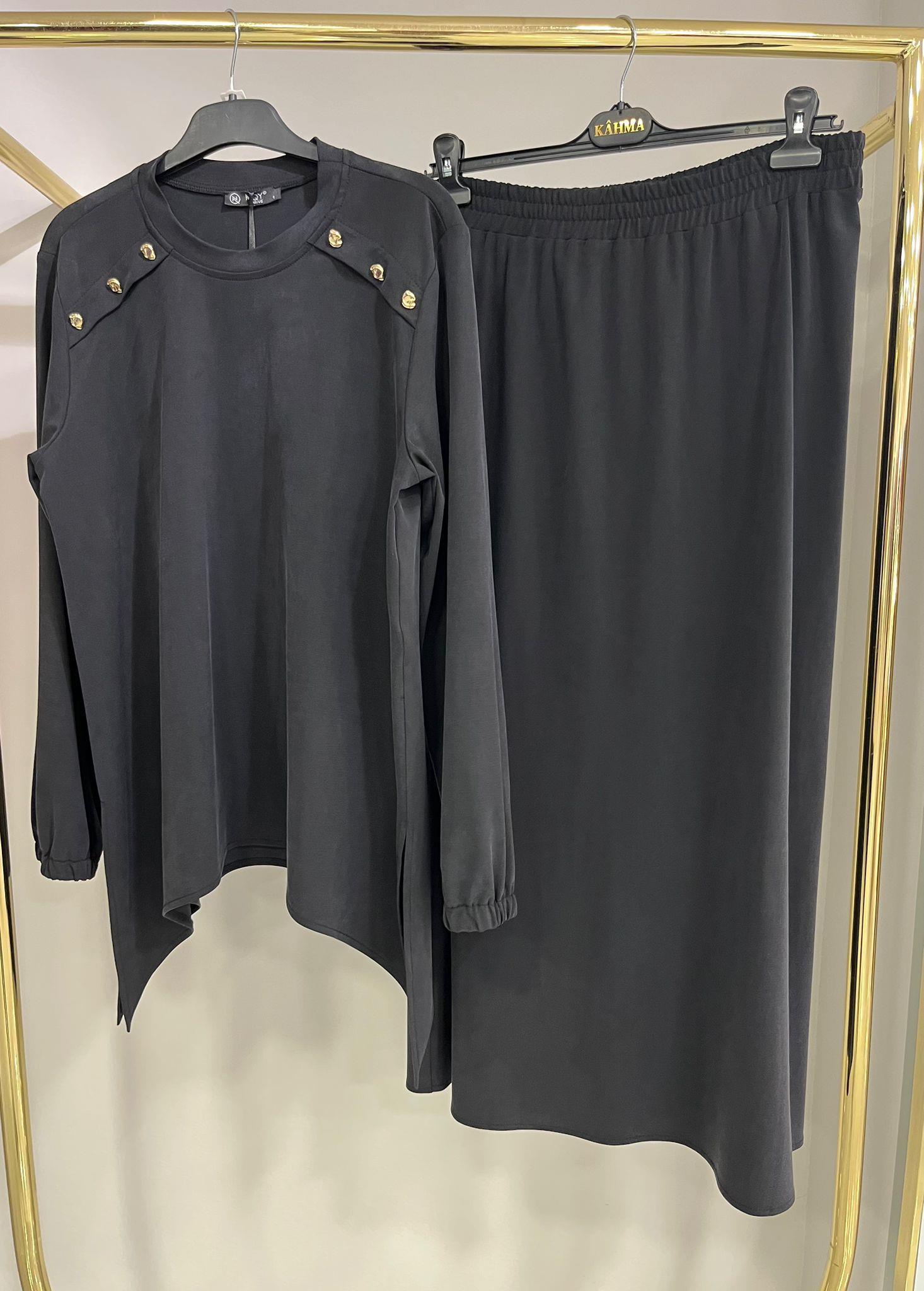NQY Prive Omuz Düğme Detaylı Siyah Etekli Takım