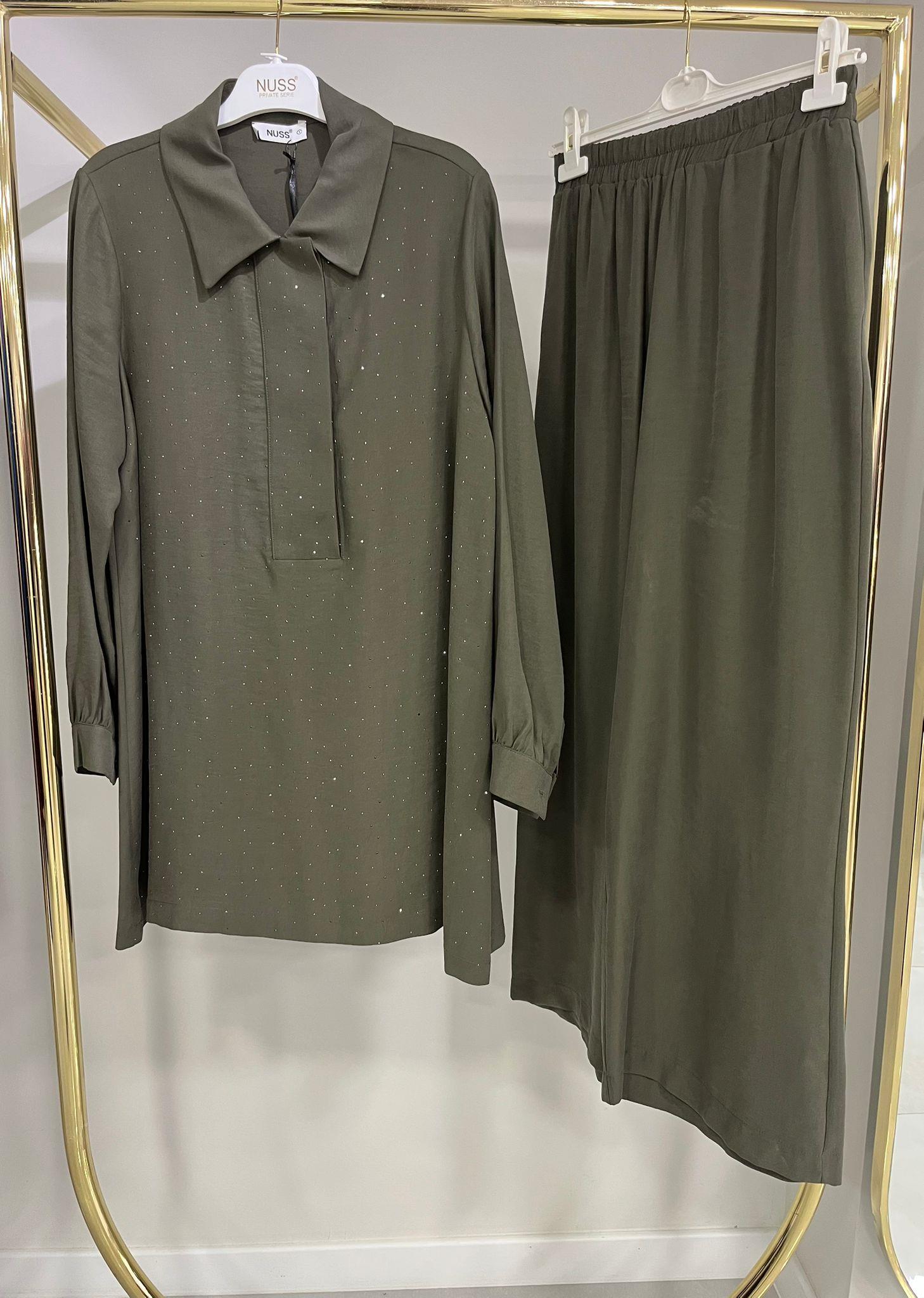 Nuss Bitter Taşlı Haki Takım