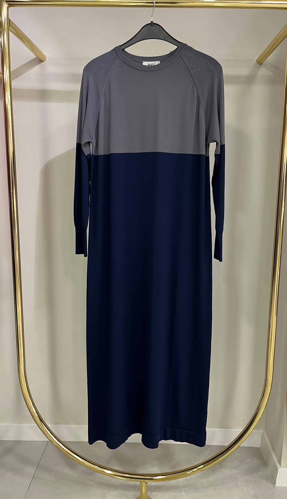 Nuss Çift Renkli Lacivert Merserize Elbise