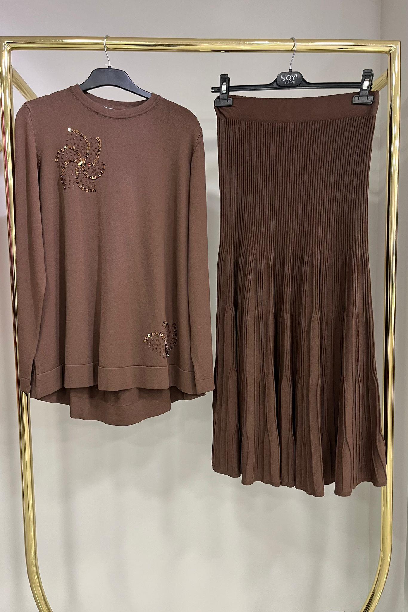 Nuss Pullu Kahve Etekli Takım