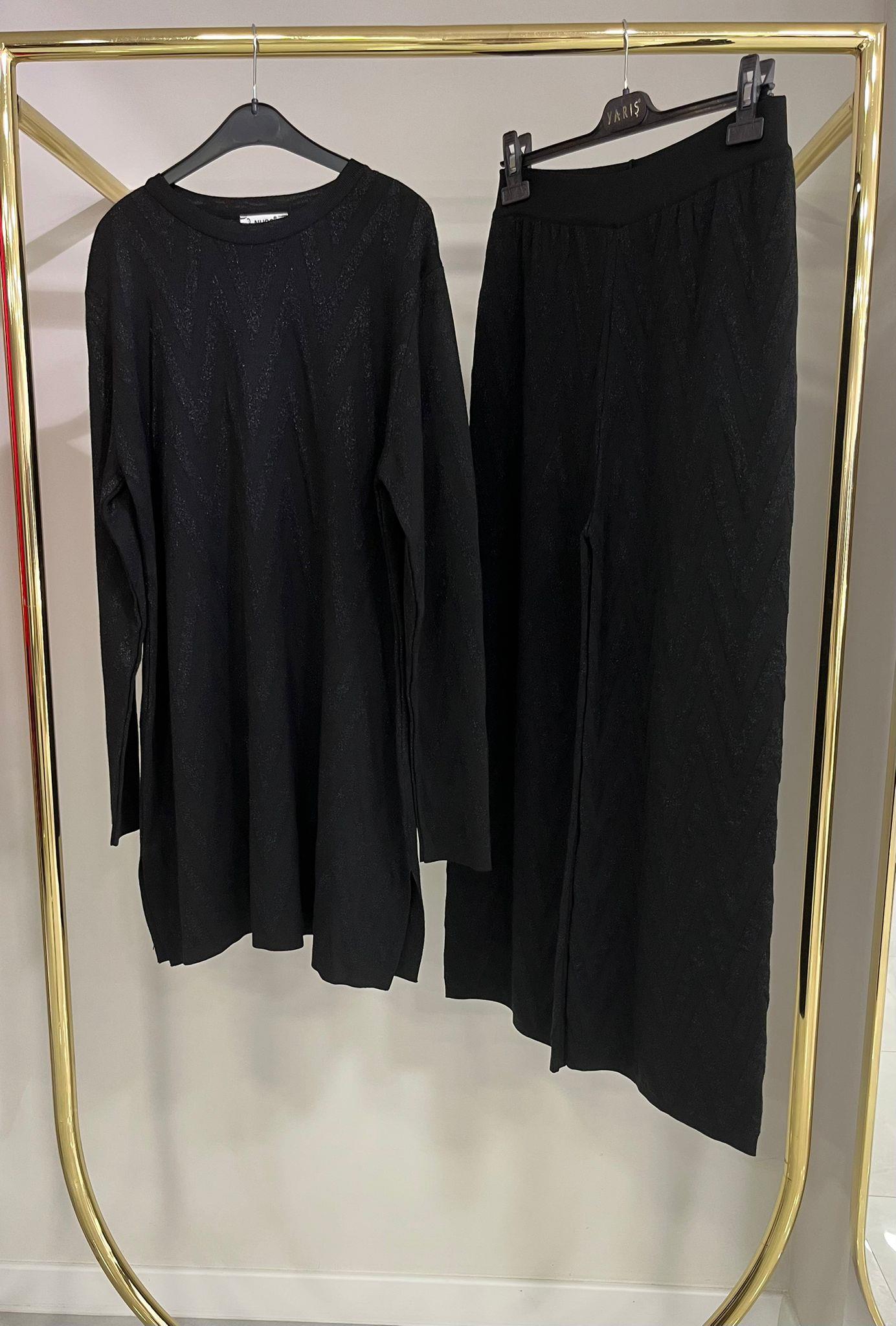 Nuss Zigzag Desenli Siyah Etekli Takım